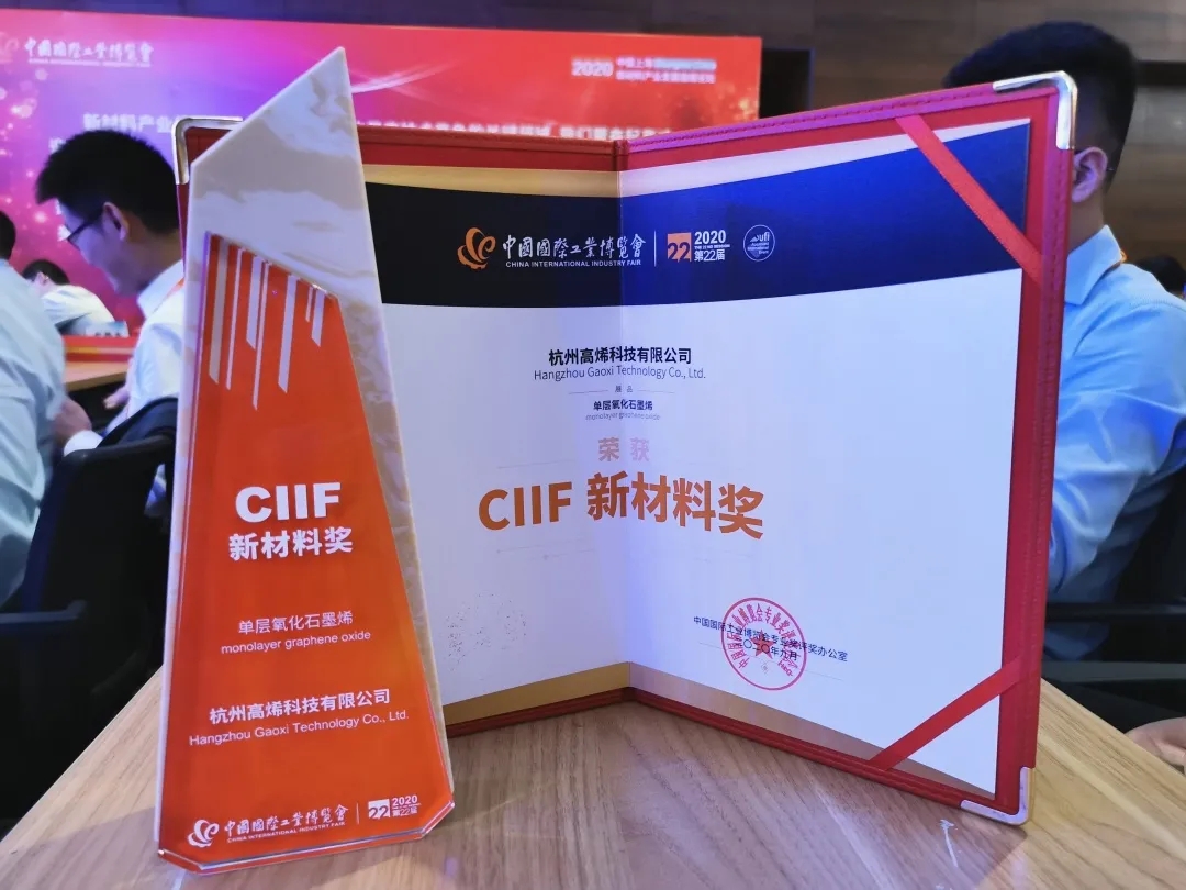 高(gāo)烯科(kē)技(jì)榮獲第22屆中國(guó)國(guó)際工(gōng)業(yè)博覽會(huì)CIIF新材料獎!