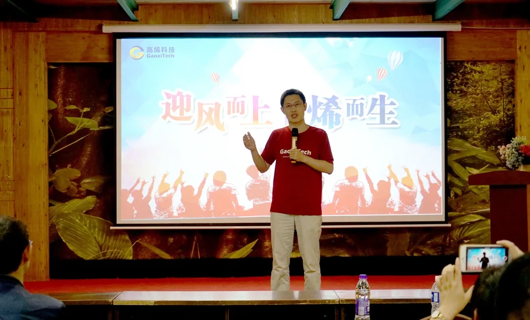 公司董事(shì)長(cháng)兼首席科(kē)學高(gāo)超教授熱(rè)情洋溢地(dì)講述“高(gāo)瞻遠(yuǎn)矚 烯美(měi)天下(xià)”的(de)願景,鼓勵大(dà)家(jiā)大(dà)膽想象,敢為(wèi)人(rén)先,勇立潮頭。
