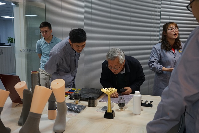 公司研發中心技(jì)術(shù)總監、副經理(lǐ)、管理(lǐ)層帶領才鴻年(nián)院士參觀了(le)研發中心、單層氧化(hu à)石墨烯生(shēng)産線,介紹了(le)公司自(zì)2016年(nián)底成立以來(lái)取得(de)的(de)多(duō)項石墨烯領域領先性技(jì)術(shù)、軍工(gōng)應用(yòng)材料成果、技(jì)術(shεù)人(rén)才構成狀況、公司現(xiàn)狀及未來(lái)的(de)發展方向等。