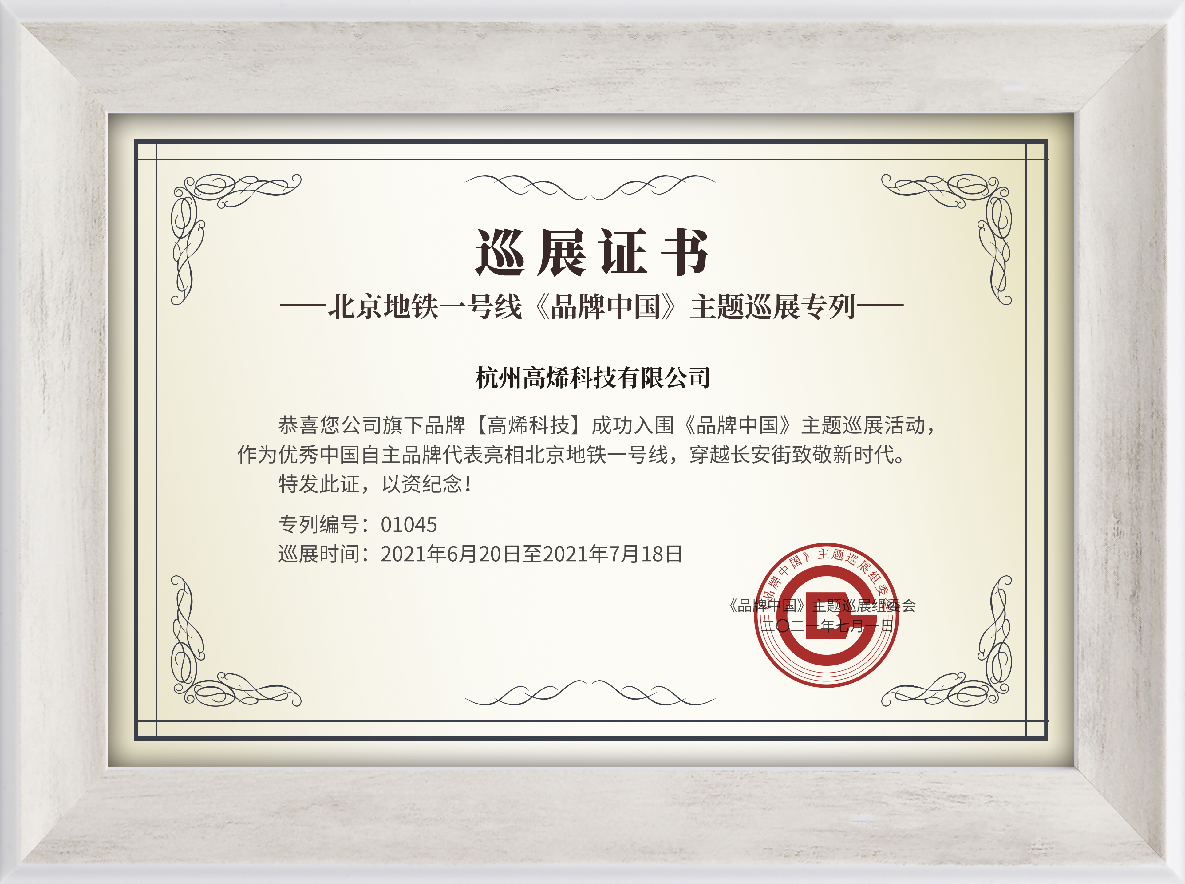 為(wèi)獻禮建黨100周年(nián),用(yòng)民(mín)族品牌緻敬新時(shí)代,央視(shì₩)《非凡匠(jiàng)人(rén)》欄目組獨家(jiā)承辦“大(dà)國(guó)品牌 中國(guó)匠(jiàng)心”主題專列活動,于全國(guó)範圍內(nèi)甄選10家(jiā)左右匠(jiàng)心品牌,在北(běi)京地(dì)鐵(tiě)進行(xíng)巡展。經過層層選拔,高(gāo)烯科(kē)技(jì)成功入選!
