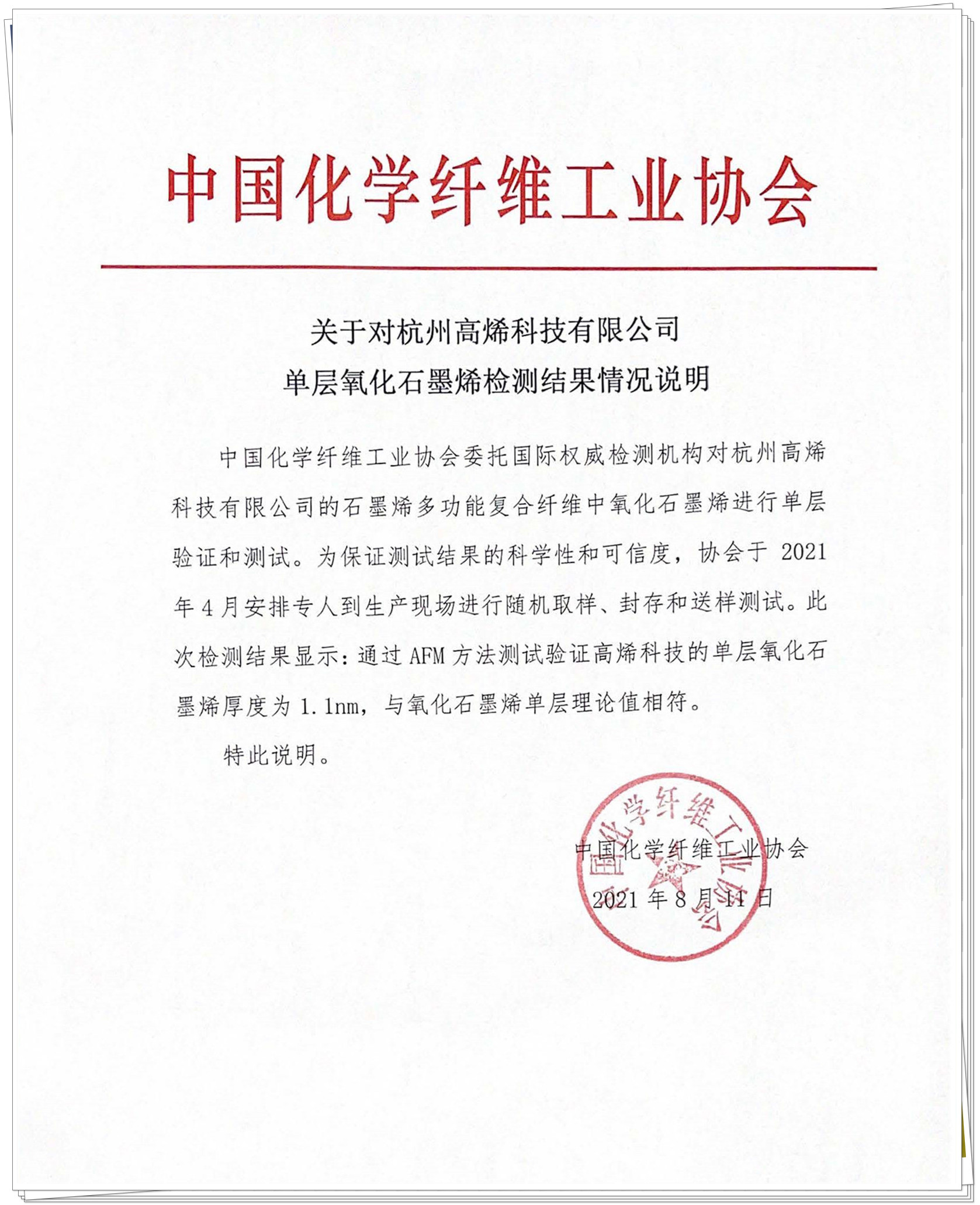 至此,高(gāo)烯科(kē)技(jì)石墨烯多(duō)功能(néng)複合纖維通(tōng)過了(le)中國(guó)化(huà¶)學纖維工(gōng)業(yè)協會(huì)、國(guó)際石墨烯産品認證中心(IGCC)雙重認證。